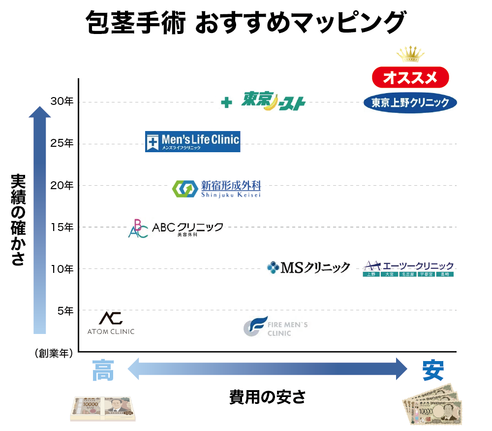 包茎手術を受けるクリニックを選ぶ正しい基準は、クリニック・医師の実績と費用の安さのバランスです。