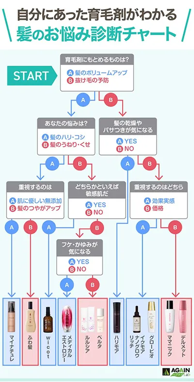 傷んだ髪質の根本改善のためには、ひとりひとり違う悩みの原因にアプローチする適切な育毛剤を選ぶことが大切です。