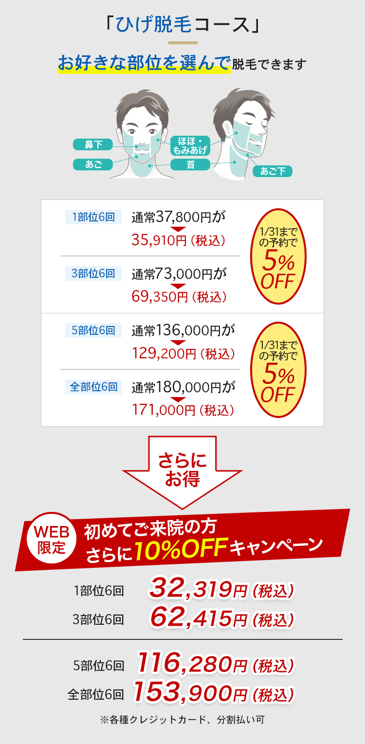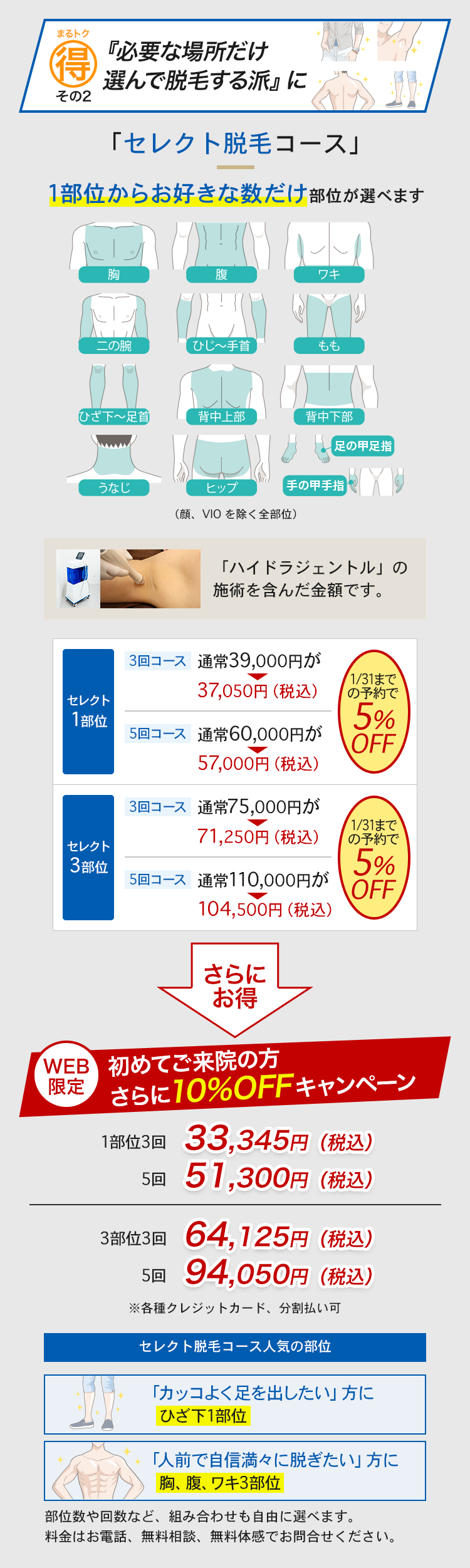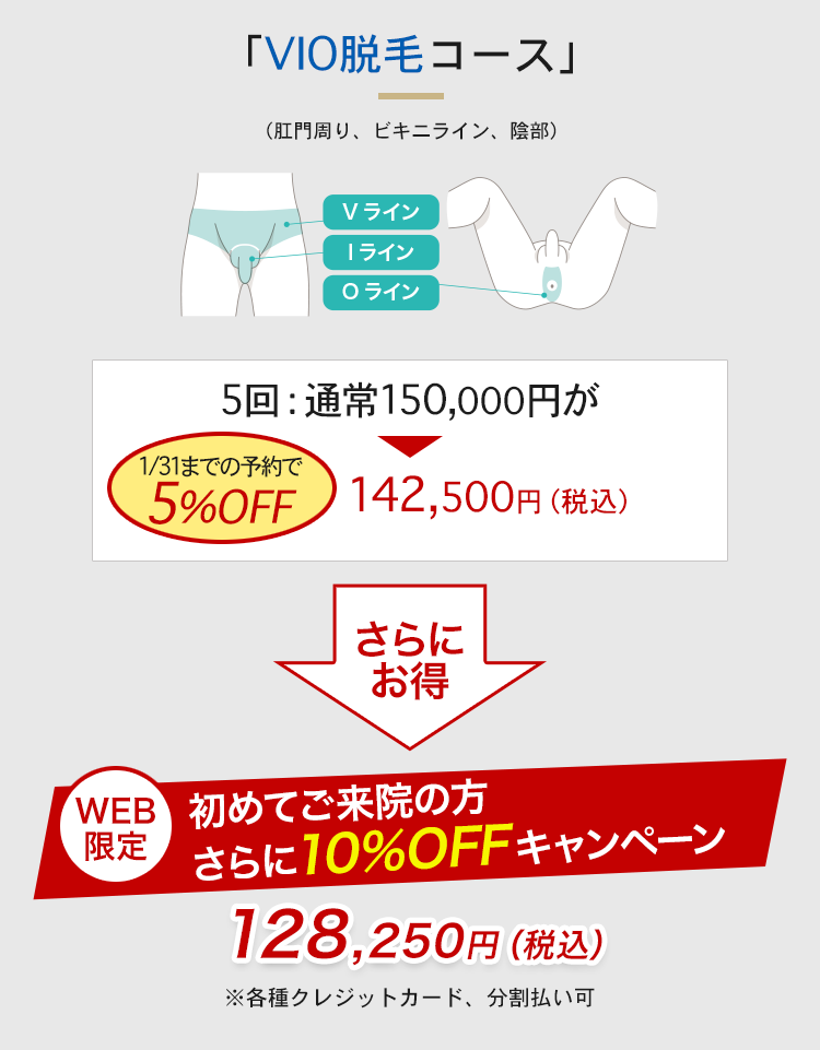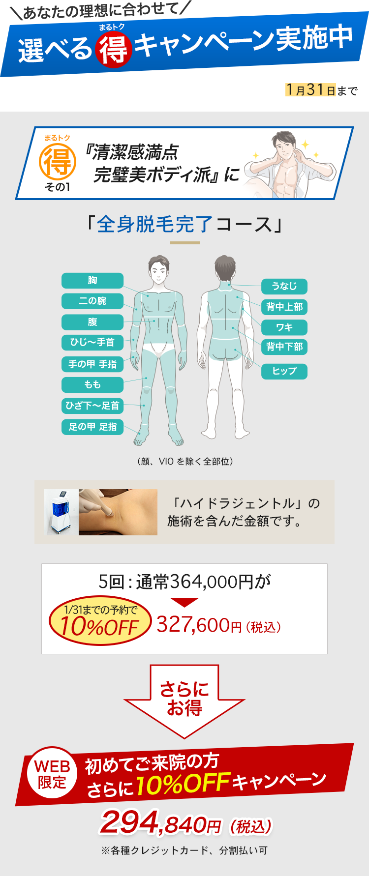 また、1ヵ月に1度施術ができるので全身脱毛が5回の通院、5カ月間で完了します。