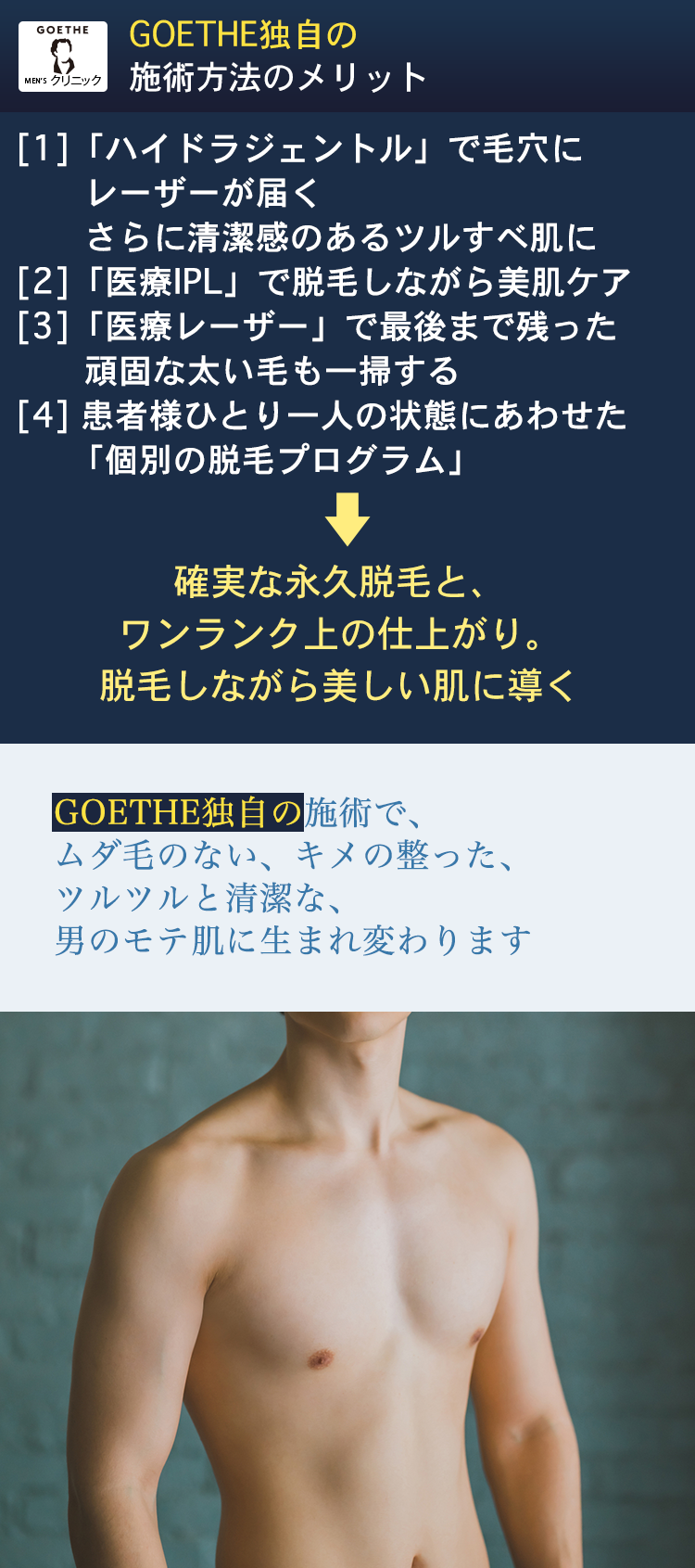 GOETHEでは、医療脱毛の中でも、独自の施術で、