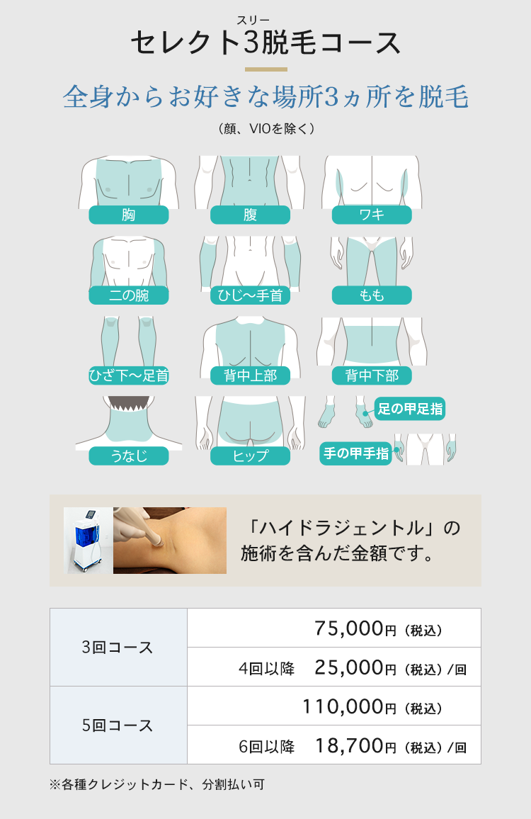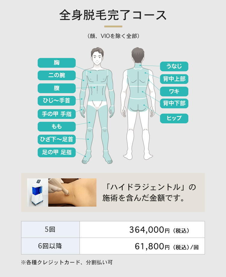また、1ヵ月に1度施術ができるので全身脱毛が5回の通院、5カ月間で完了します。